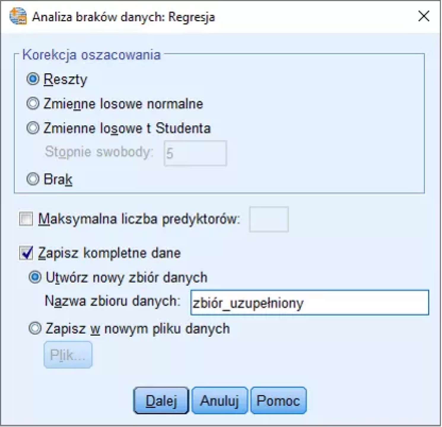 - Zarządzanie brakami danych poprzez mechanizm podstawiania wartości